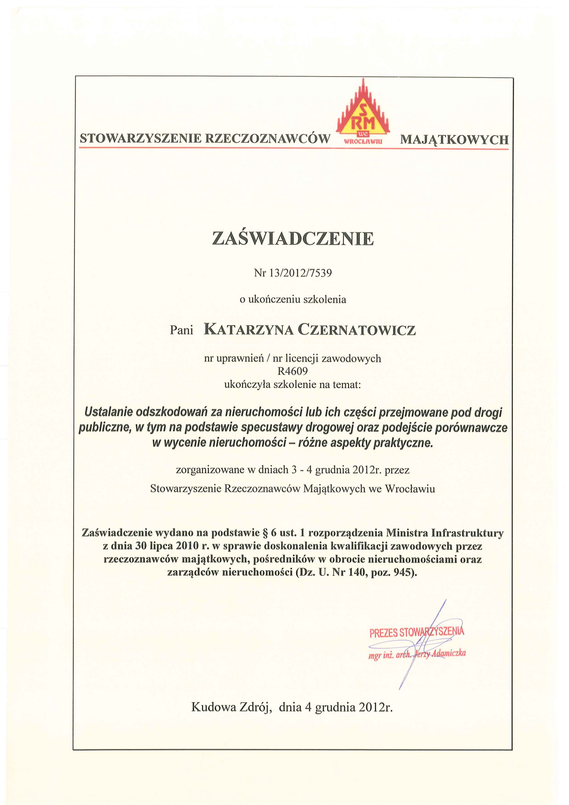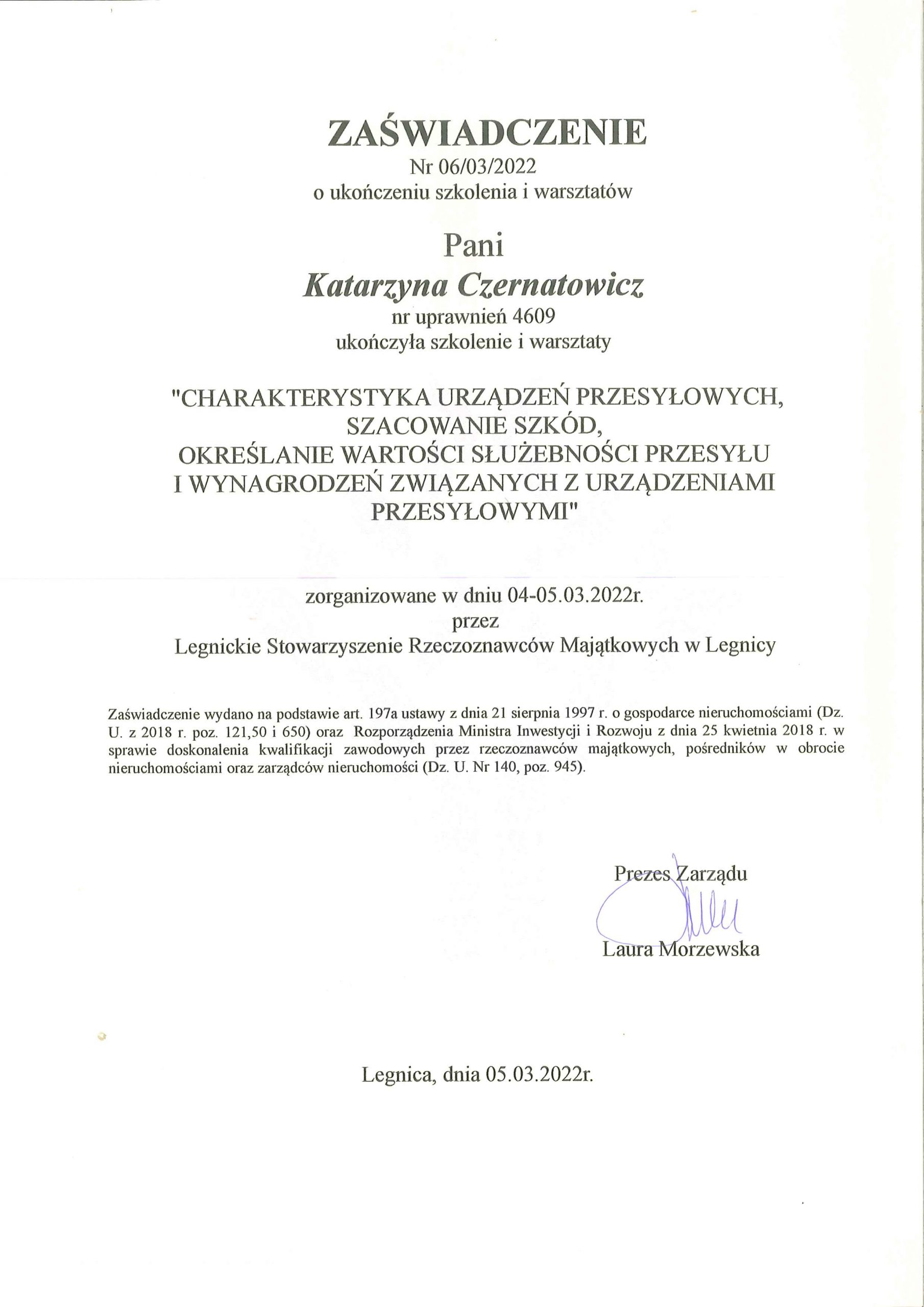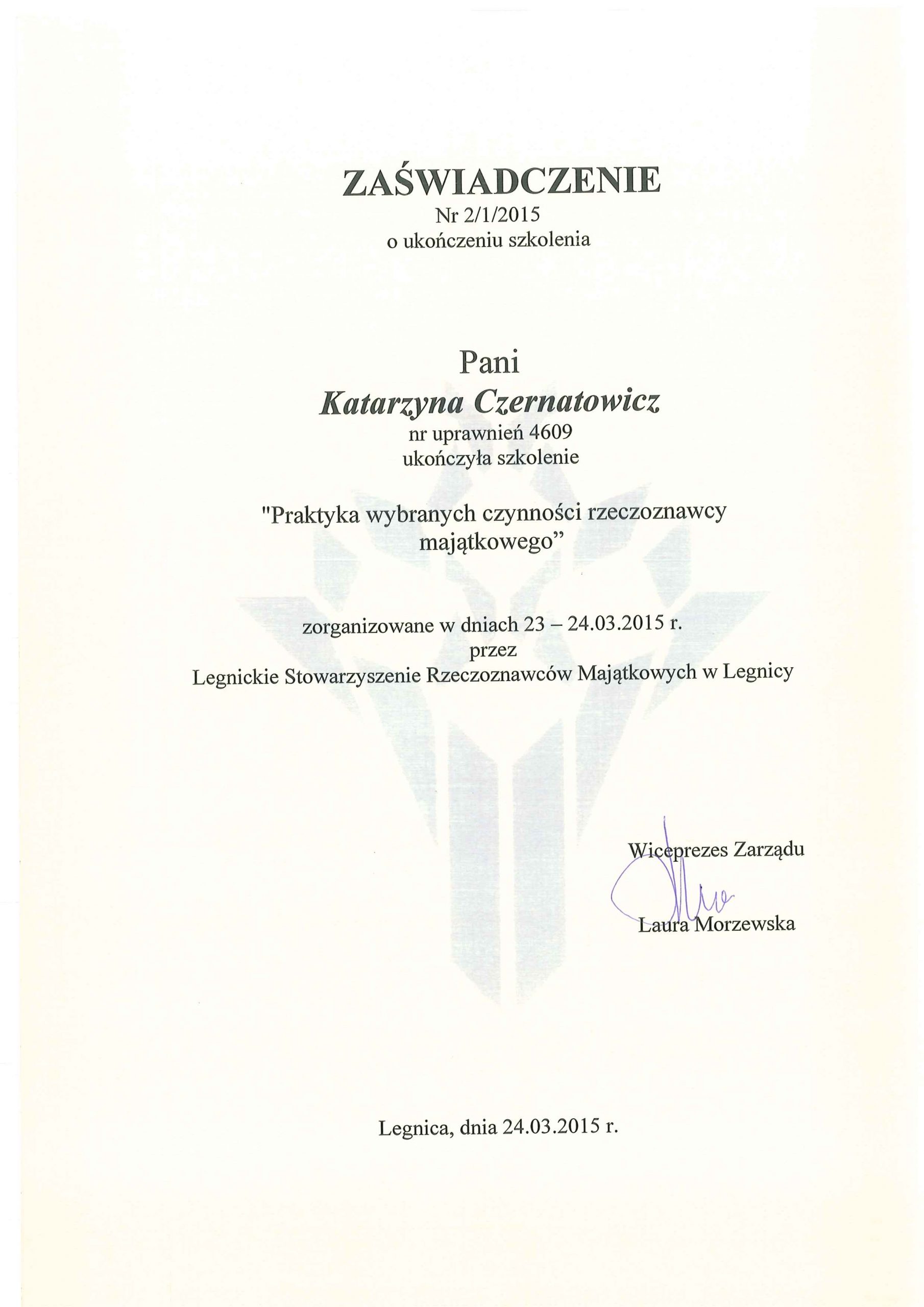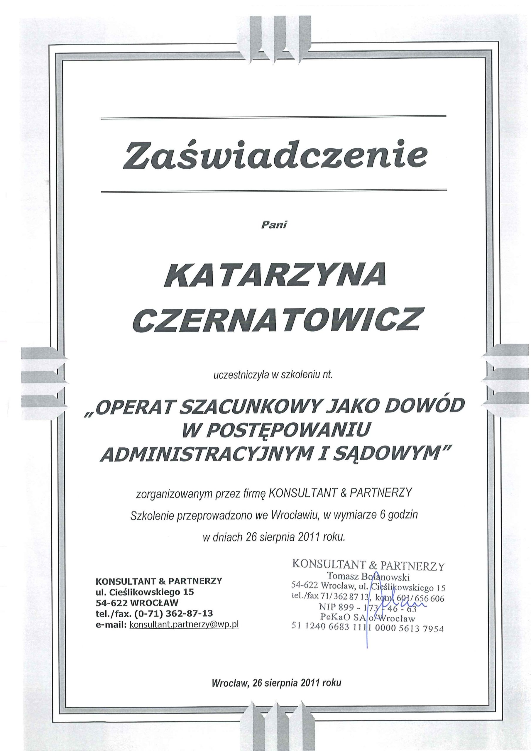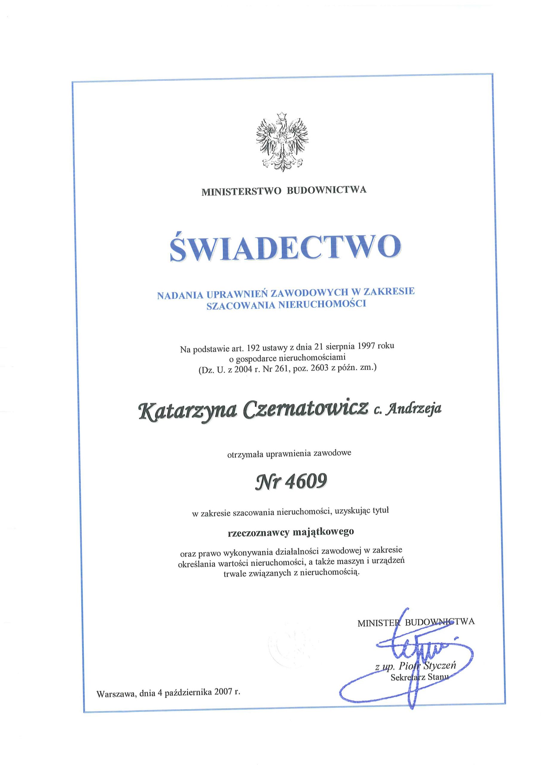 mgr inż. Katarzyna Czernatowicz - uprawniony rzeczoznawca majątkowy
