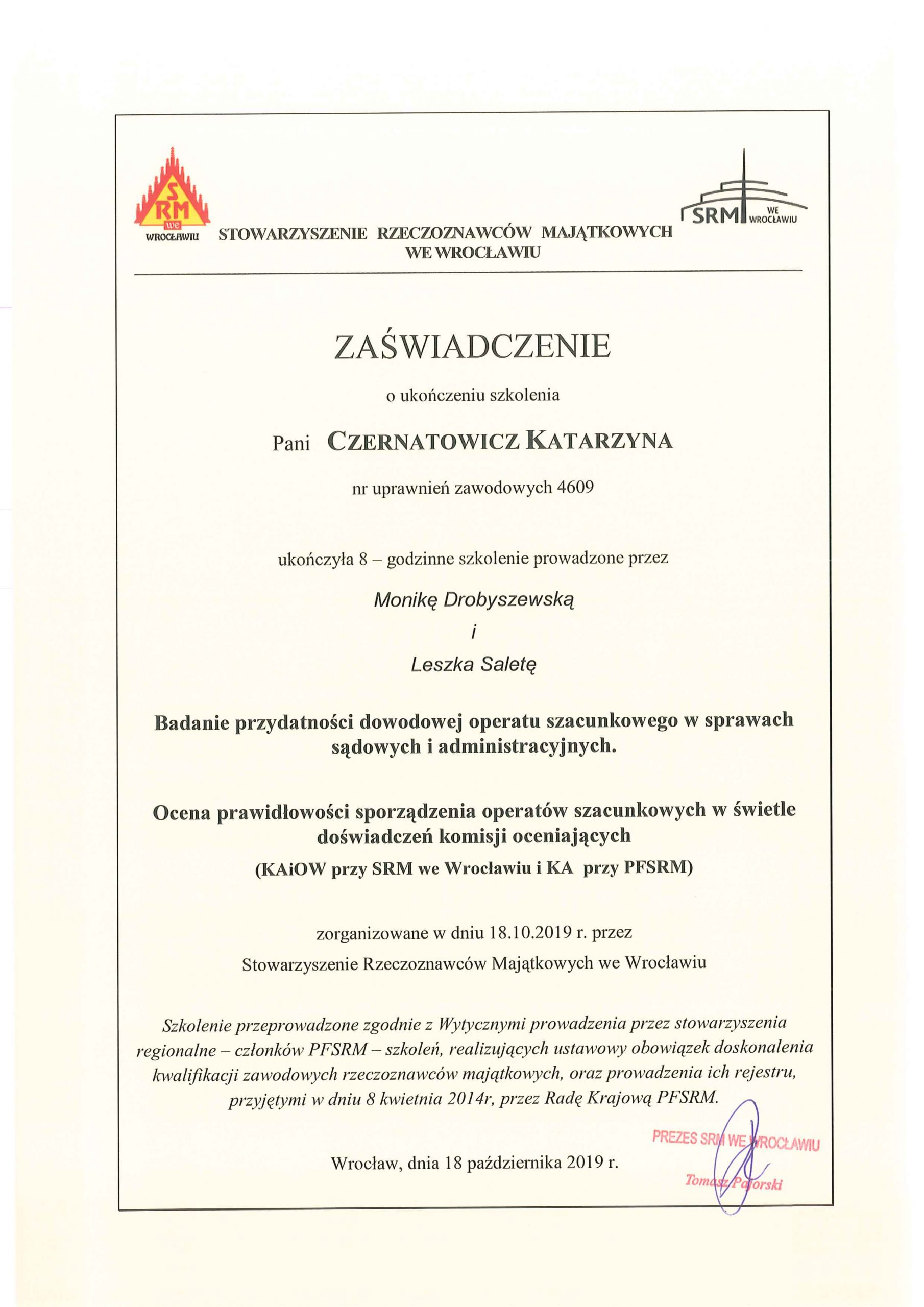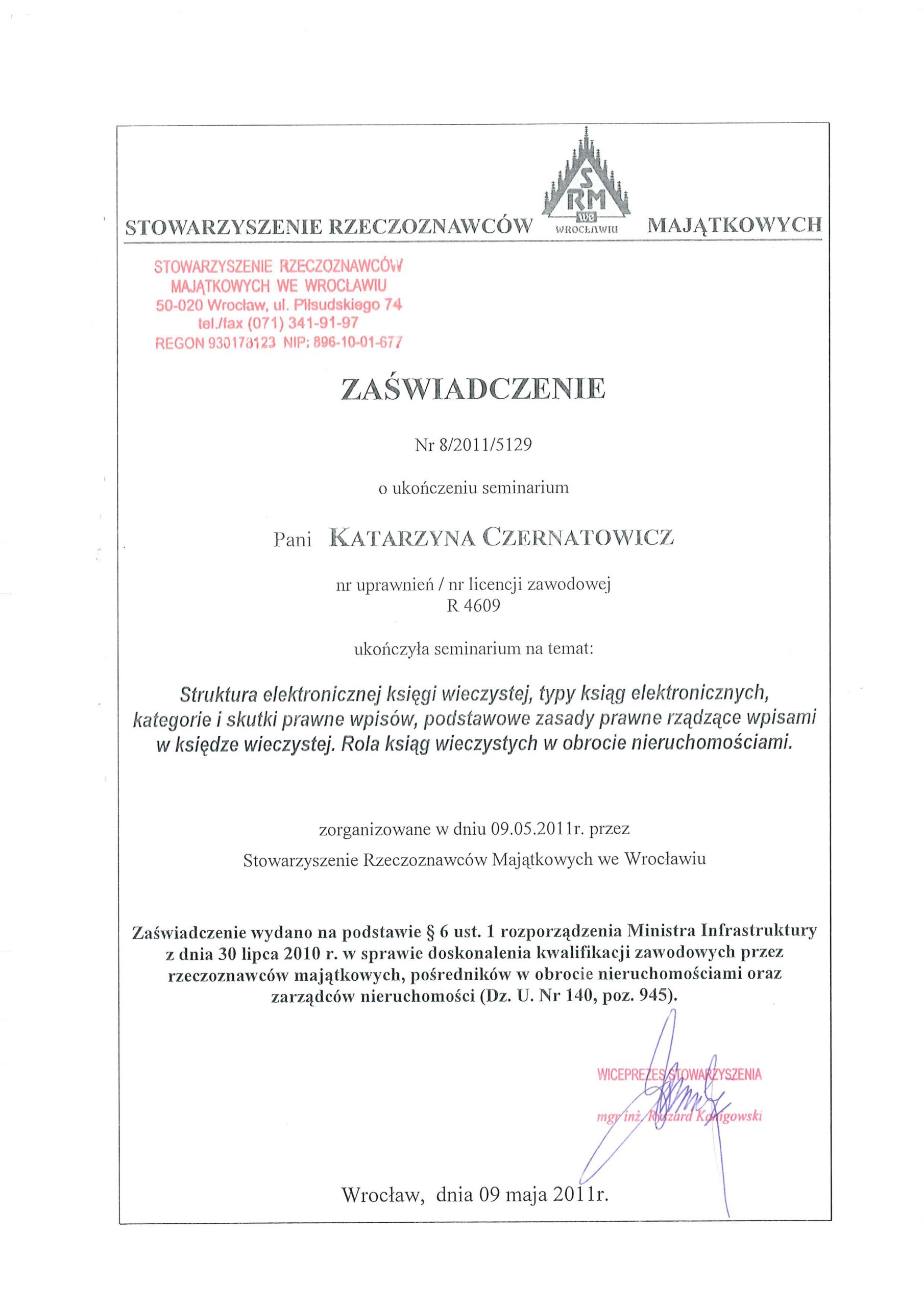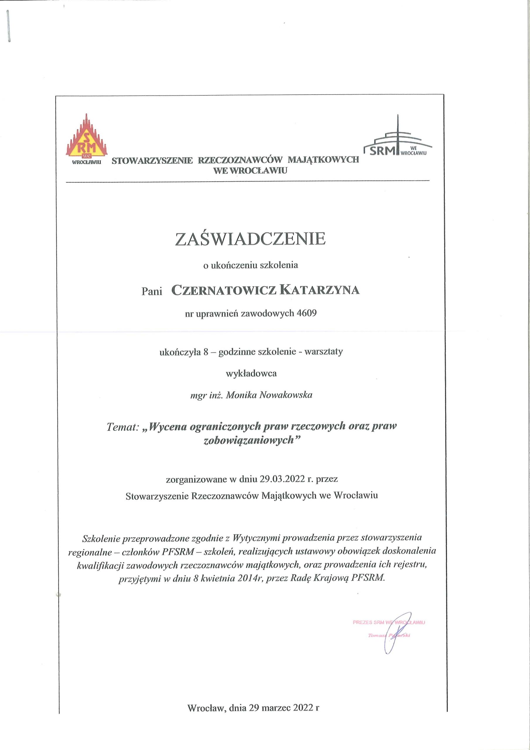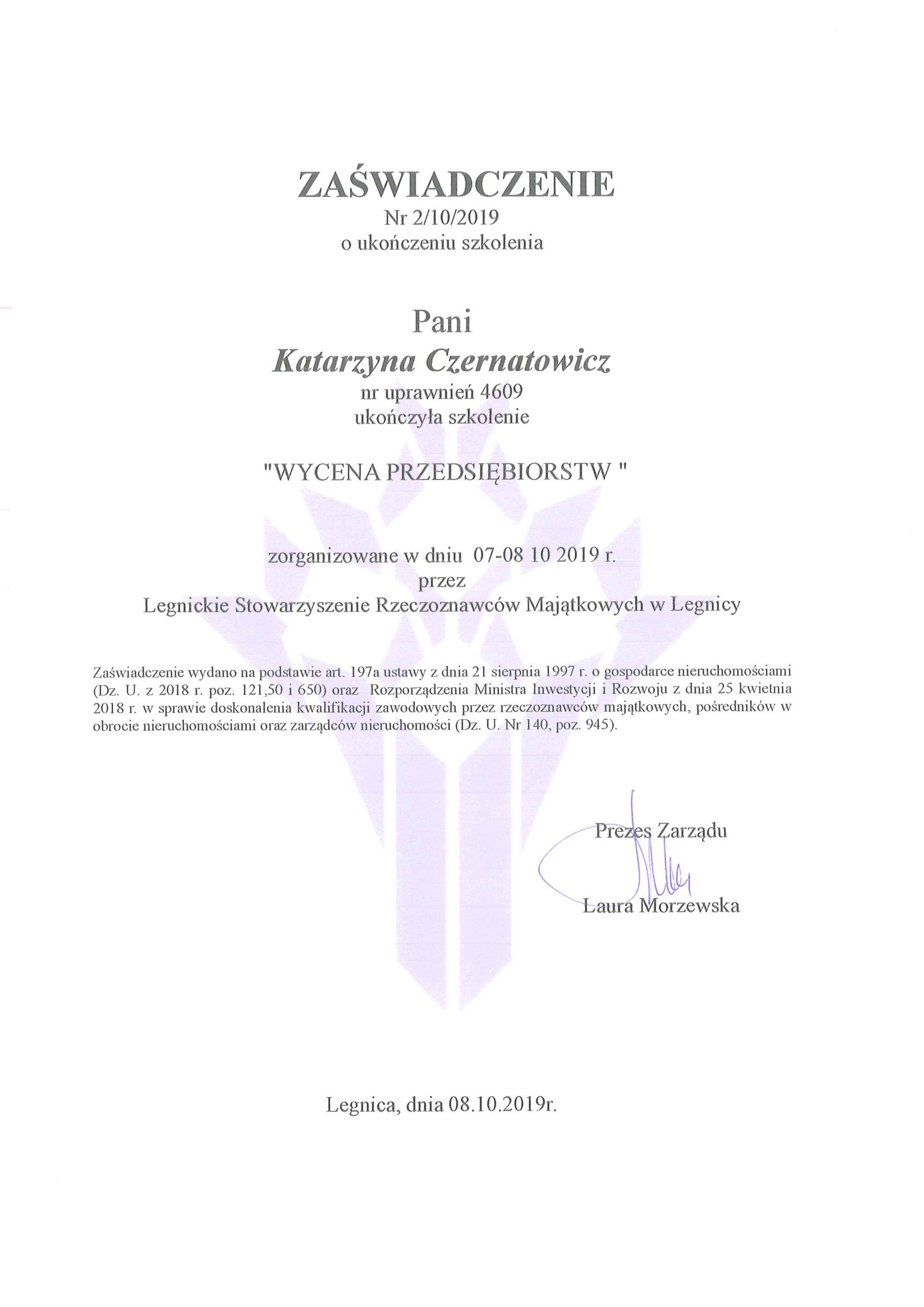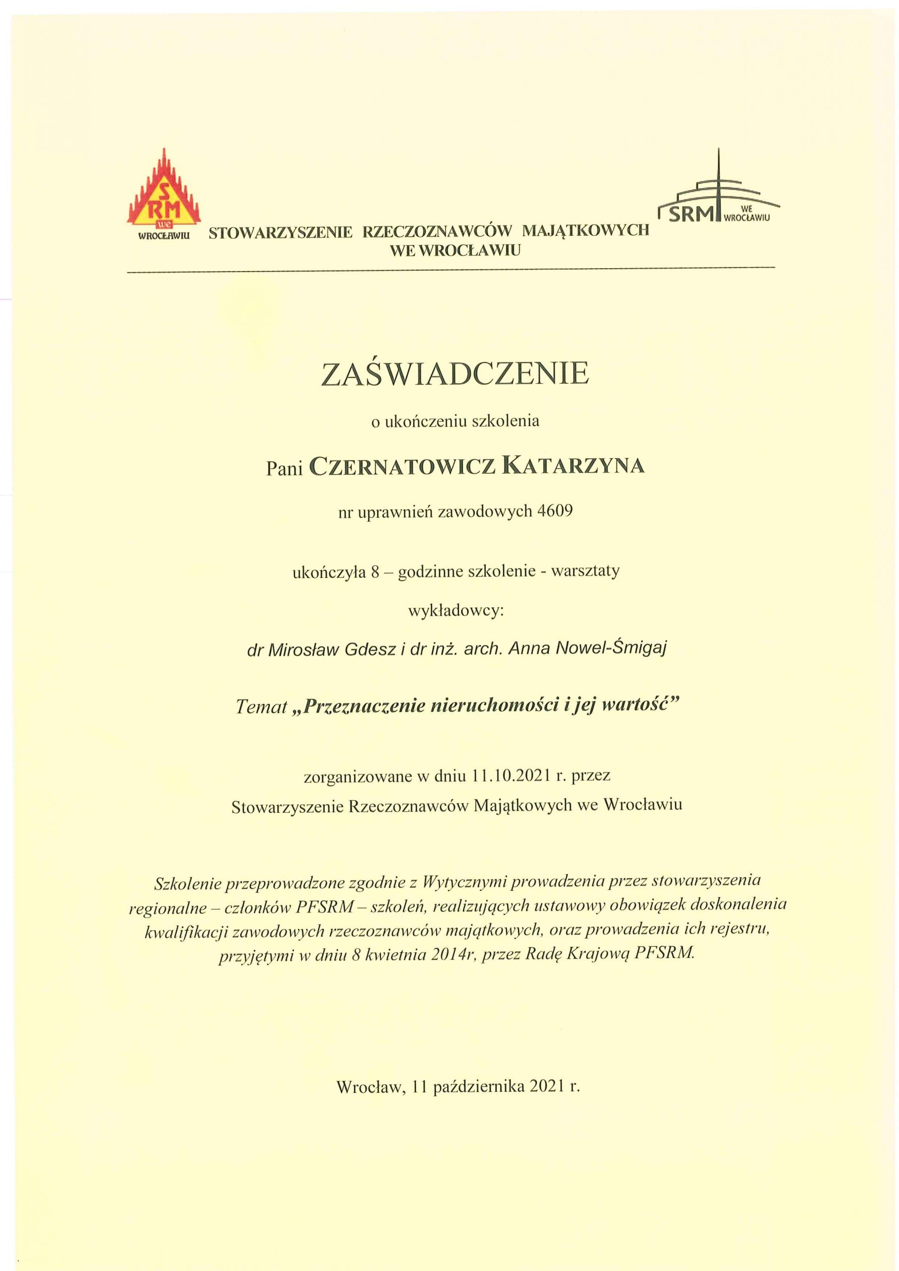 mgr inż. Katarzyna Czernatowicz - uprawniony rzeczoznawca majątkowy