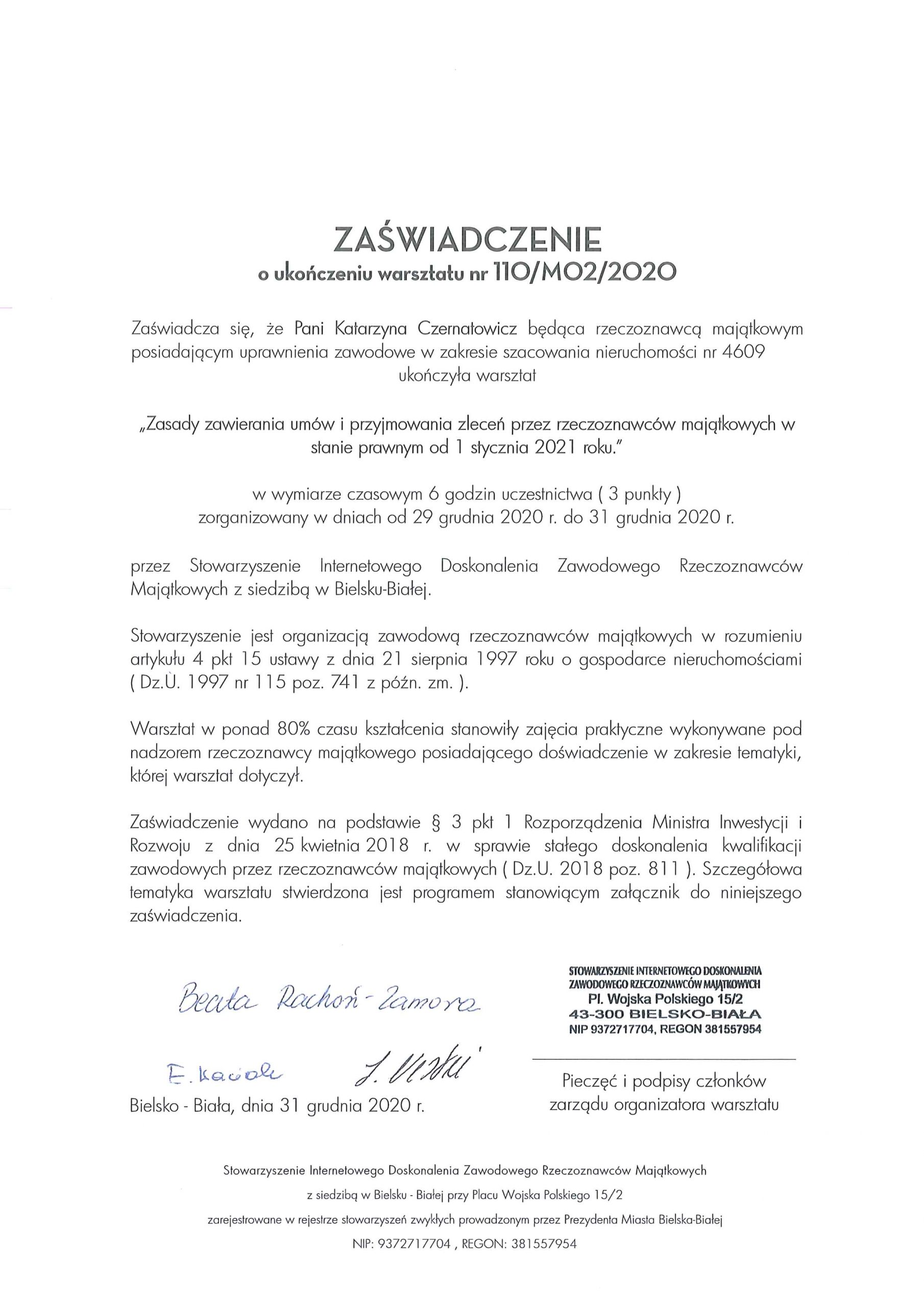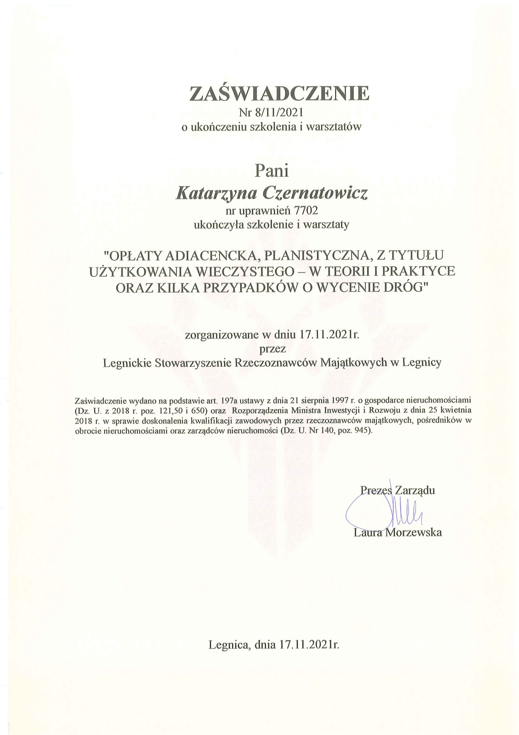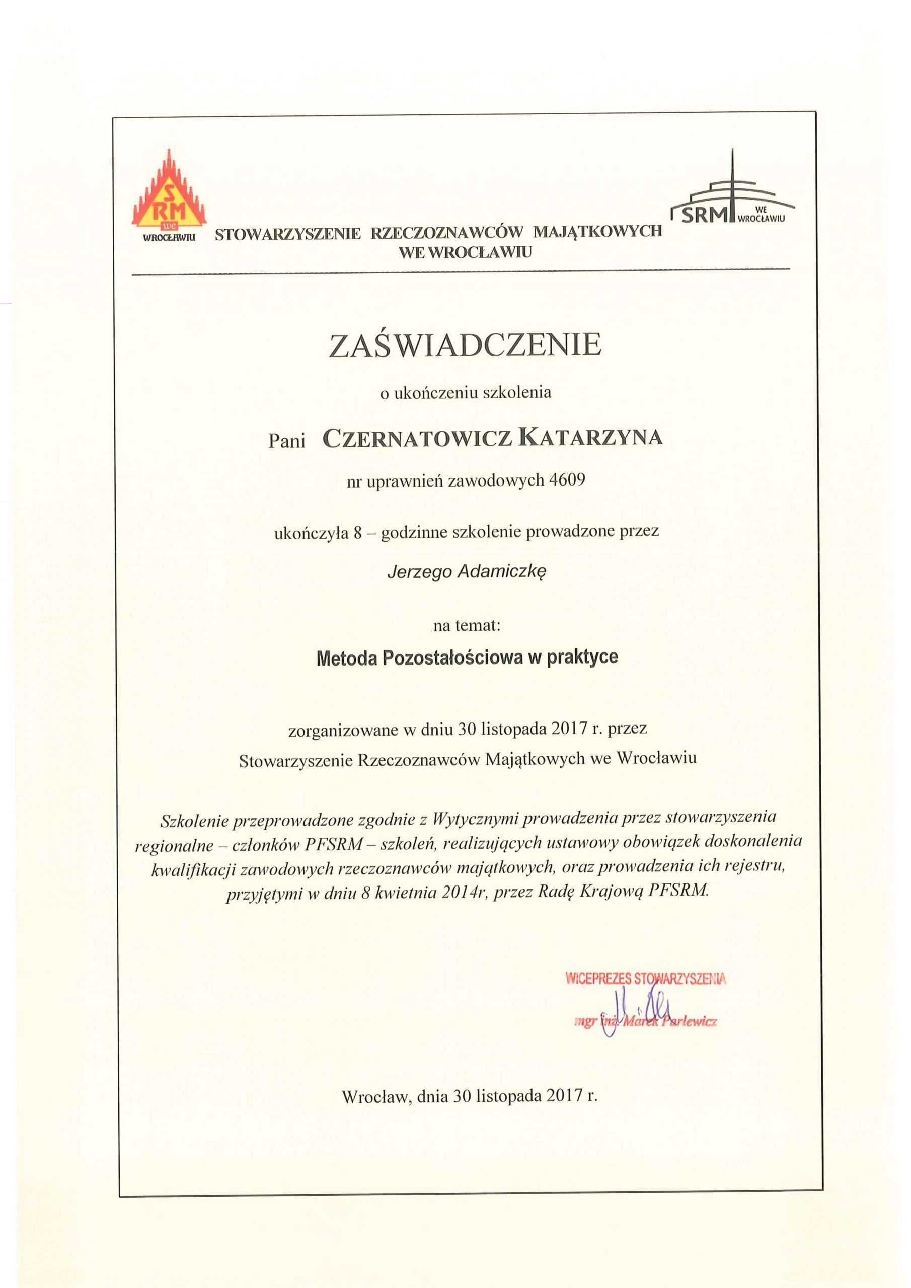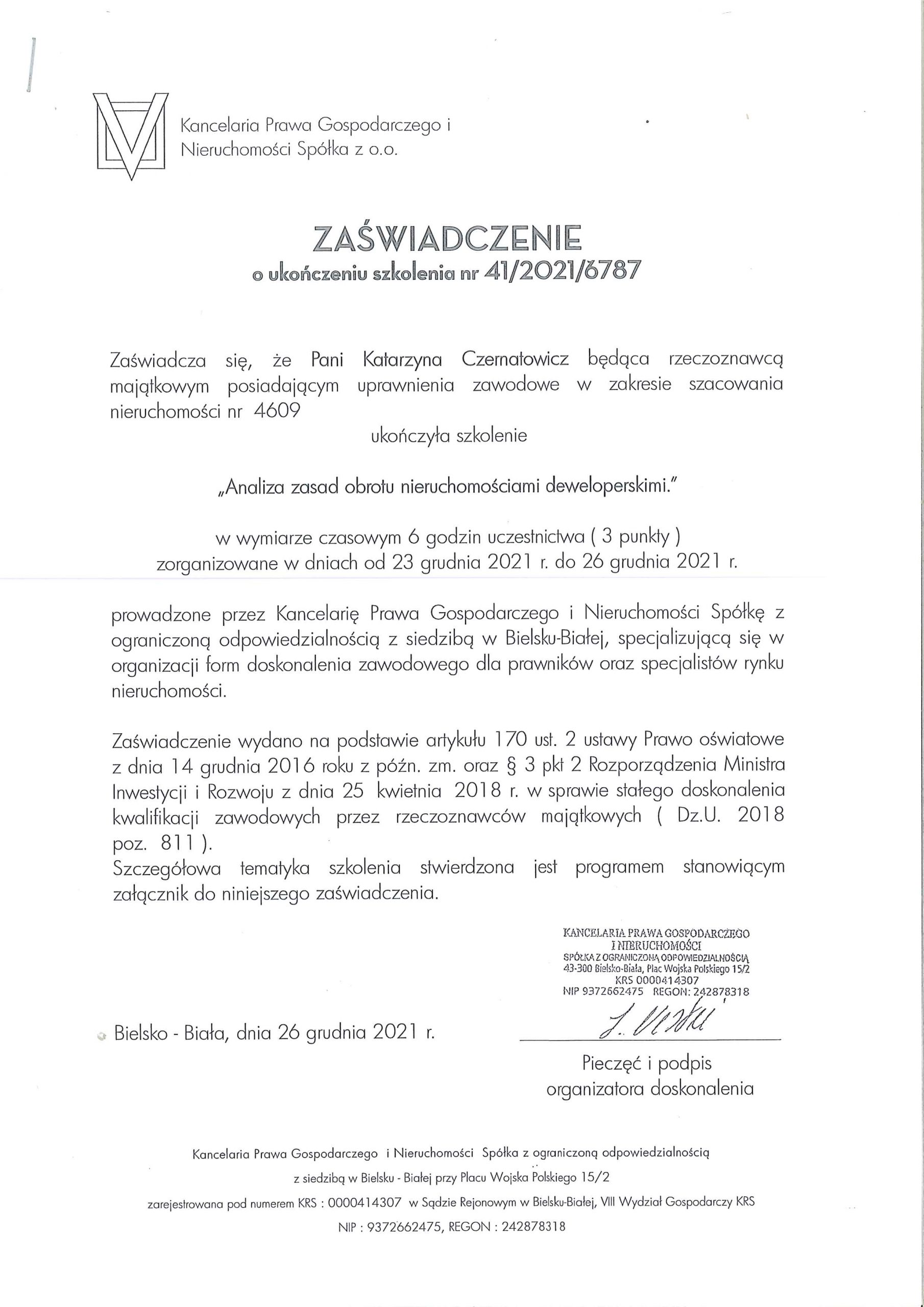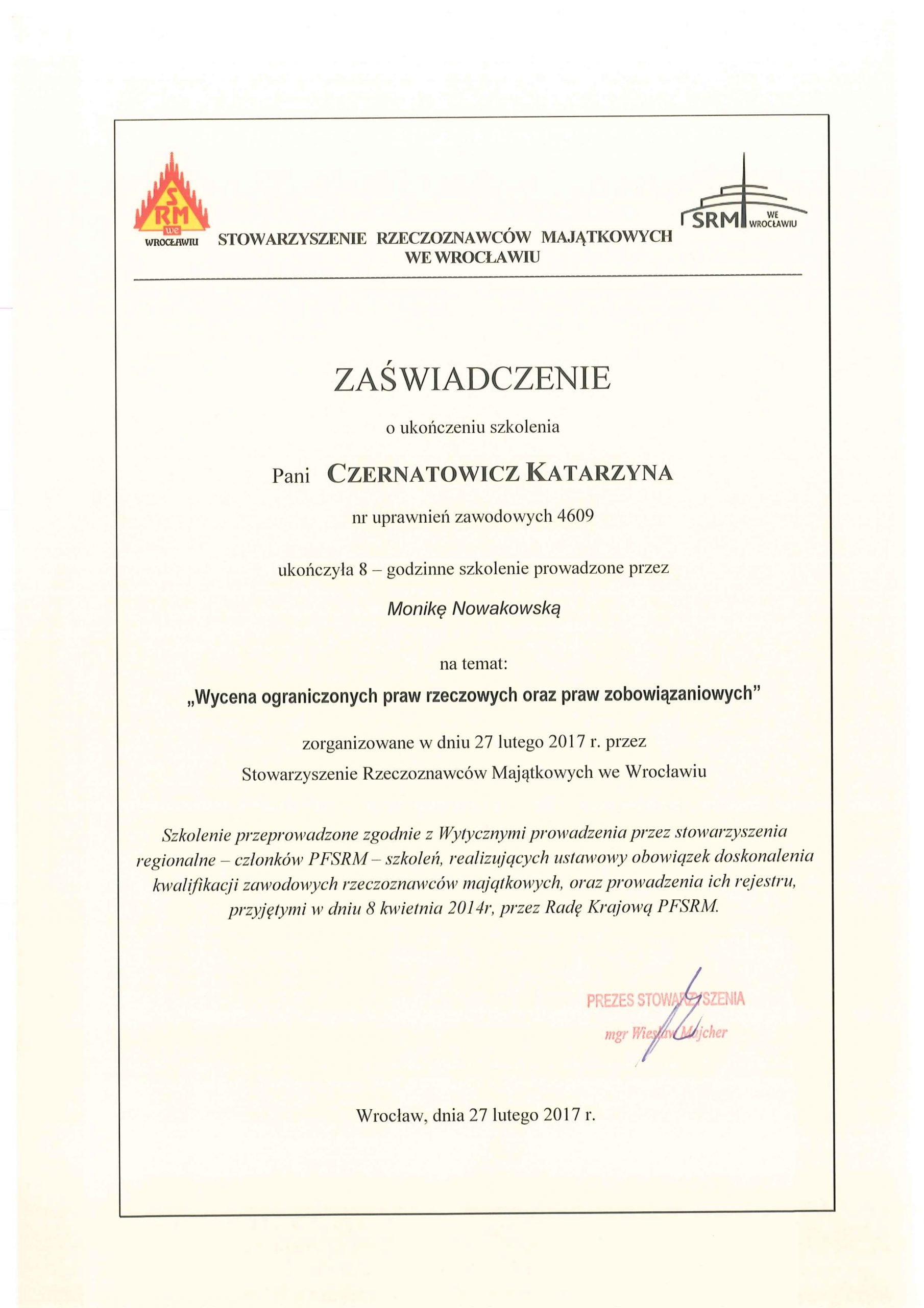 mgr inż. Katarzyna Czernatowicz - uprawniony rzeczoznawca majątkowy